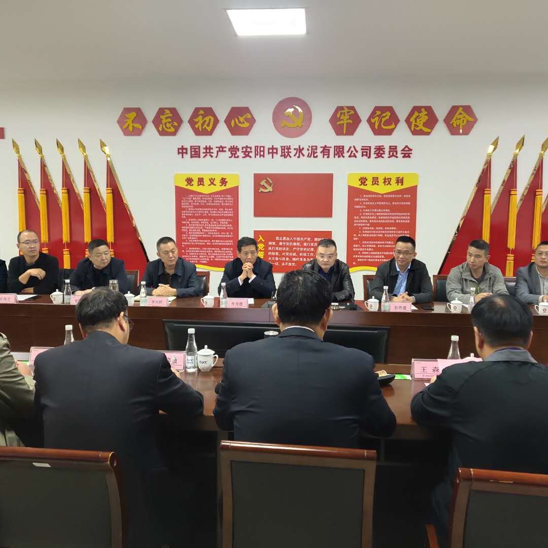 2020年10月14日,中国建筑材料联合会会长乔龙德及江油市政府一行莅临安阳中联调研工作。河南区副总裁、安阳中联党委书记、总经理黄颂高、河南区副总裁刘奕敏陪同调研。乔会长先后实地参观了生产一线、企业展厅,随后召开座谈会,江油市副市长周世明一行10人、安阳中联班子成员、中层正职以上人员参加了座谈会。